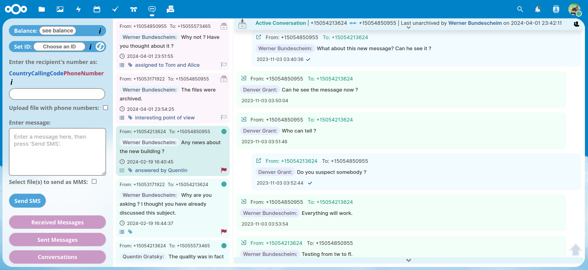 Yes, it's all working. I've received and send texts from my firstname.lastname account. I was able to restrict this account to just one of the numbers on the account. I'm not seeing any errors. Now I'm trying to figure out the best way to use it from a smartphone. I was hoping the nextcloud android app would have some functionality, but it doesn't seem to. I do get the notification though. Thanks again for your help! |